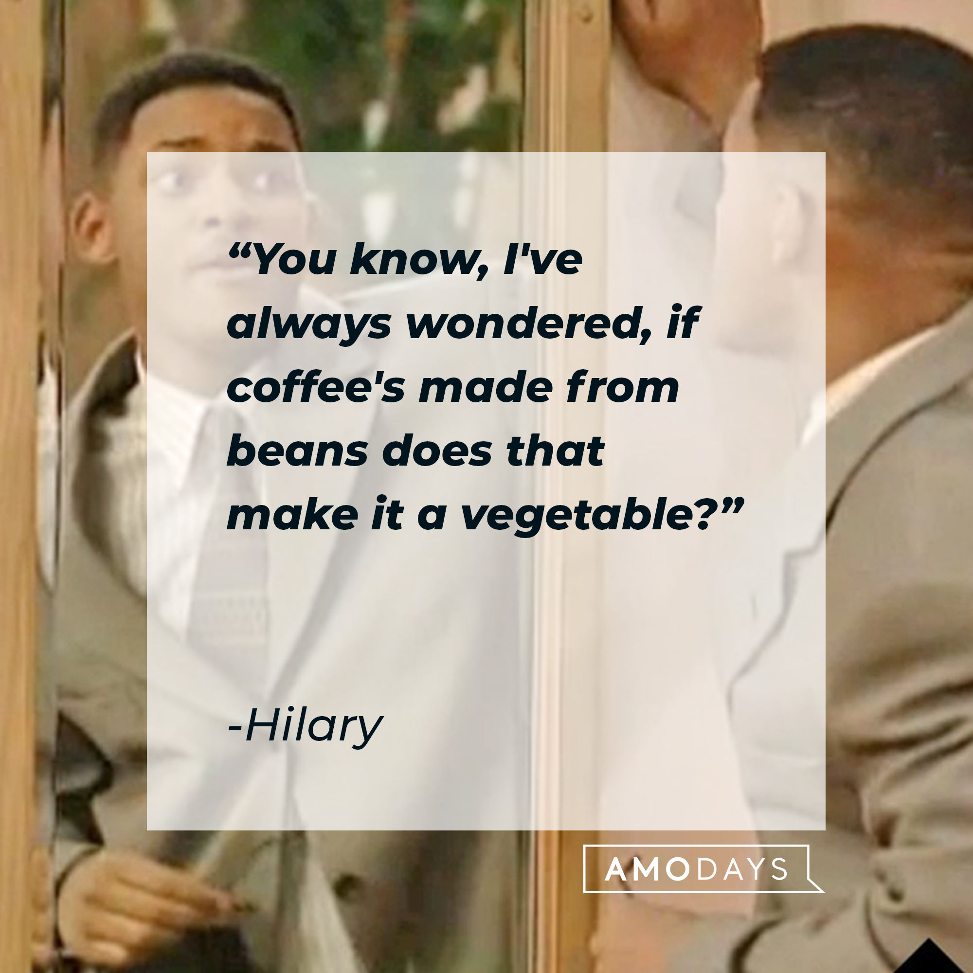 A picture of Will with Hilary’s quote: “You know, I've always wondered, if coffee's made from beans does that make it a vegetable?” | Source: facebook.com/TheFreshPrinceofBelAir