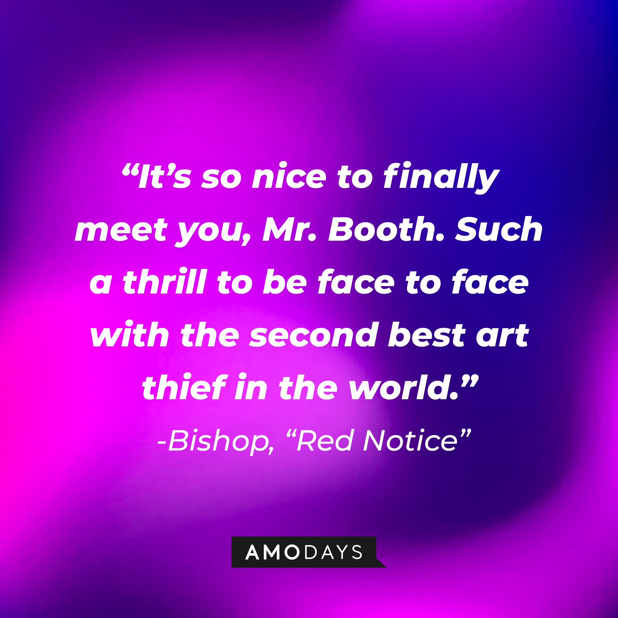 Bishop's quote from "Red Notice:" It’s so nice to finally meet you, Mr. Booth. Such a thrill to be face to face with the second best art thief in the world.” | Source: AmoDays