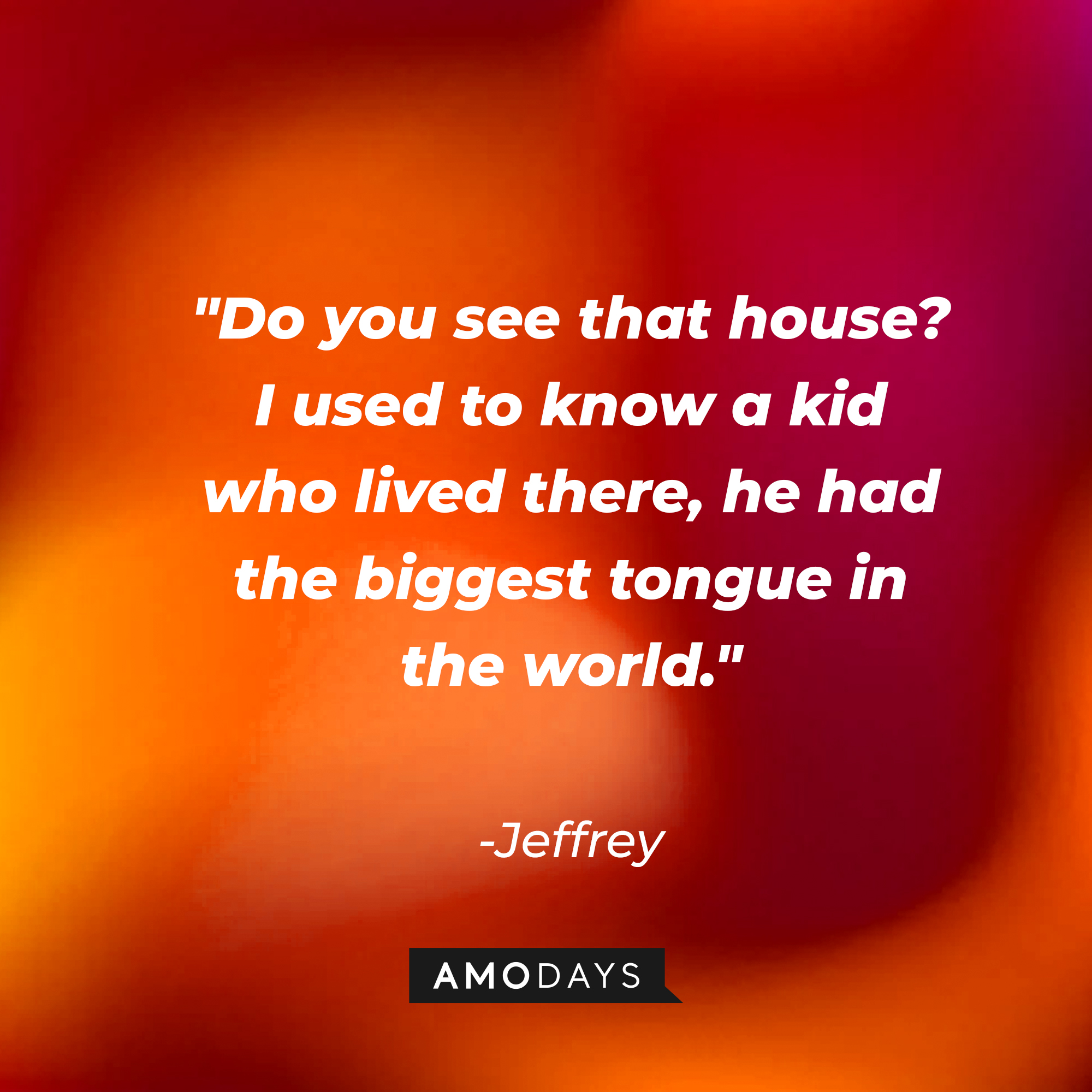 "Do you see that house? I used to know a kid who lived there; he had the biggest tongue in the world." — Jeffrey